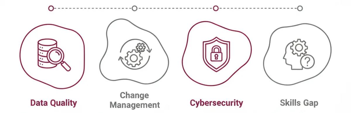 - Data Quality: Fragmented or inconsistent project data weakens model accuracy. Establish data-governance standards early.