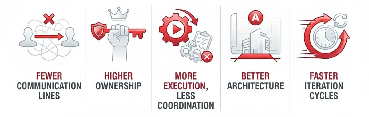 More people meant more communication, more meetings, more confusion, and slower execution.