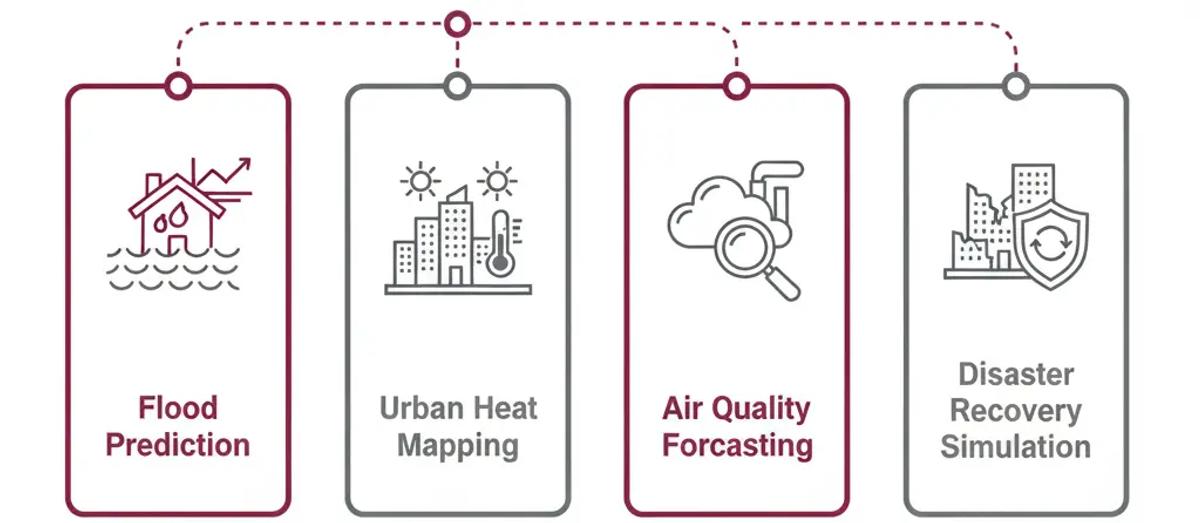 - Disaster Recovery Simulation: Reinforcement-learning models optimize evacuation routes and emergency resource allocation.