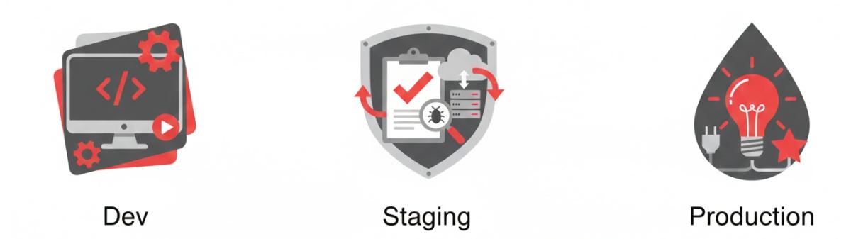 This ensures deployments cannot jump environments unintentionally.