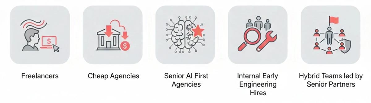 Founders usually evaluate a few types of teams. Understanding the tradeoffs helps you choose wisely.