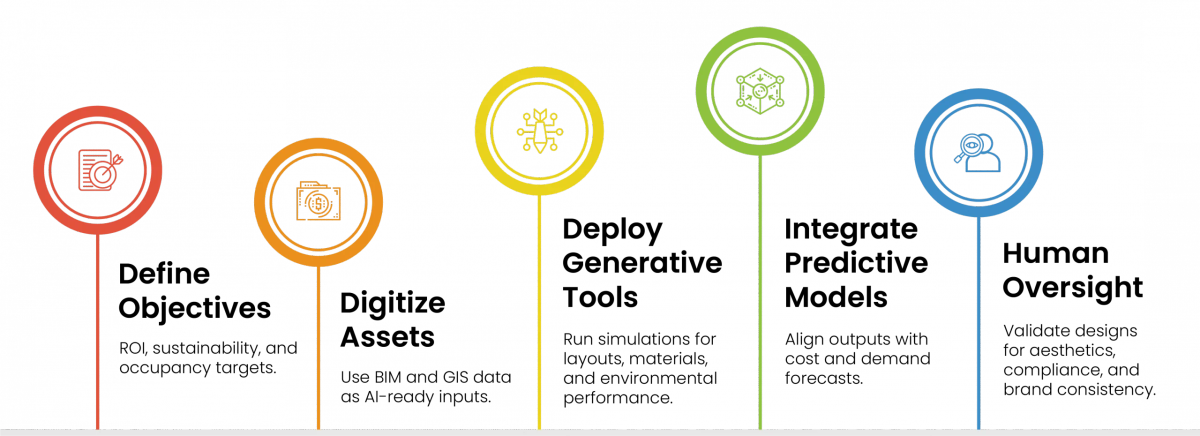- Mitsubishi Estate (Japan): AI-generated retail layouts aligned with real-time footfall predictions, increasing per-square-foot revenue by 18%.