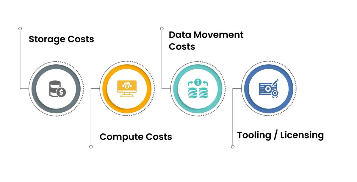- Analyze the individual components that make up the total cost structure (storage, compute, data movement, etc.).
